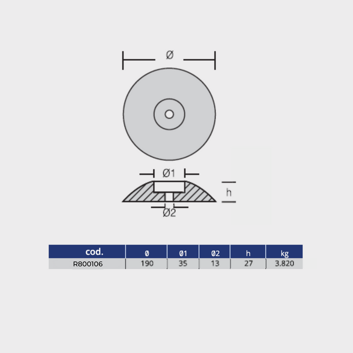 Anode Gouvernail/Rosace, zinc rondes - DIA: 190mm, 3.82KG